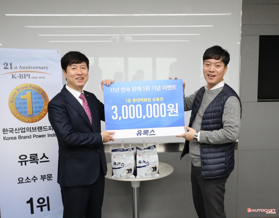 롯데정밀화학은 지난 17일 자사 요소수 제품 유록스의 ‘11년 연속 요소수 판매 1위 기념 이벤트’ 당첨자 경품 증정식을 했다고 18일 밝혔다.