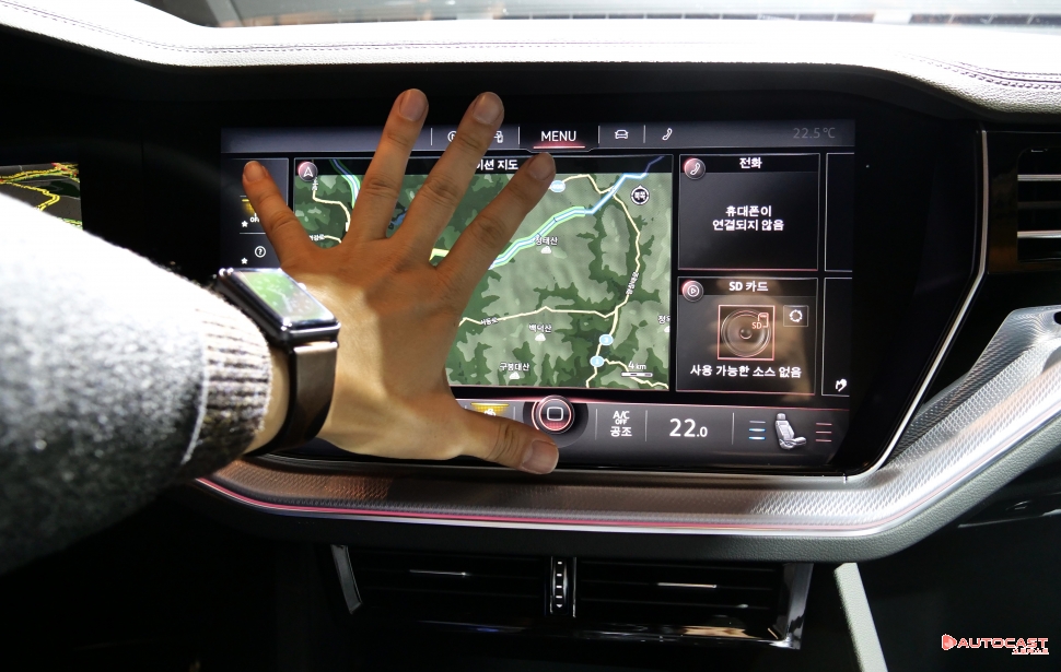 신형 투아렉의 가장 큰 특징은 실내 변화다. 중앙의 인포테인먼트 스크린에 대형 노트북과 비슷한 크기인 15인치 화면을 사용했다. 손을 1.5cm 근처에만 가져가도 반응하는 제스쳐 컨트롤을 지원하며 한글화된 내비게이션을 탑재하고 있다.