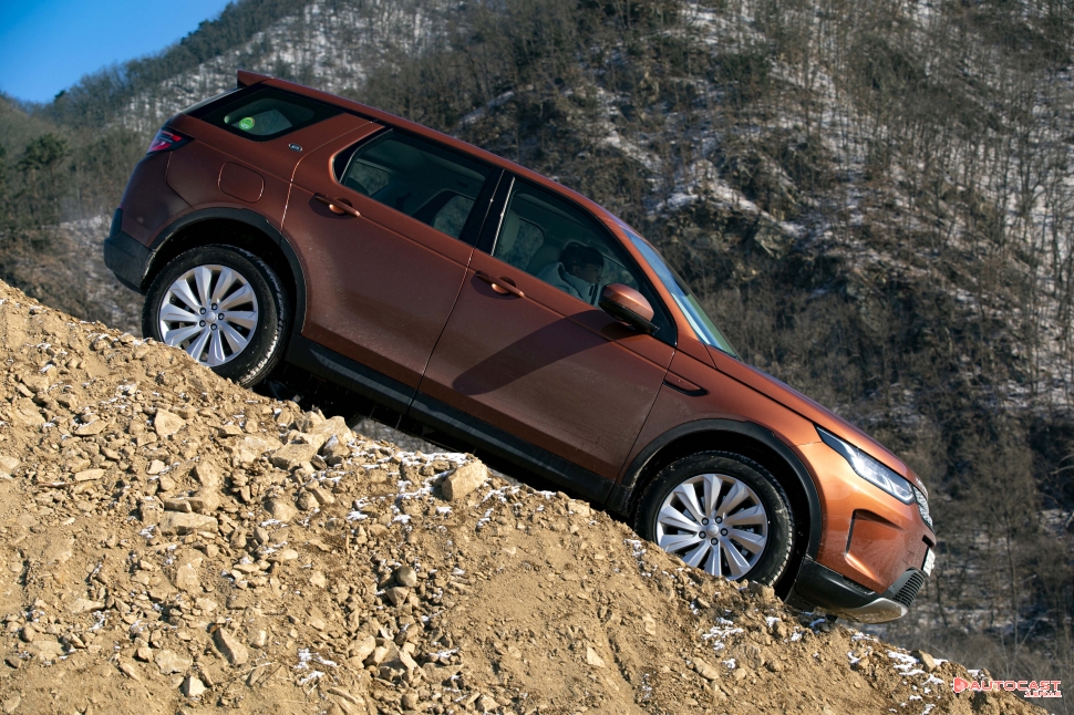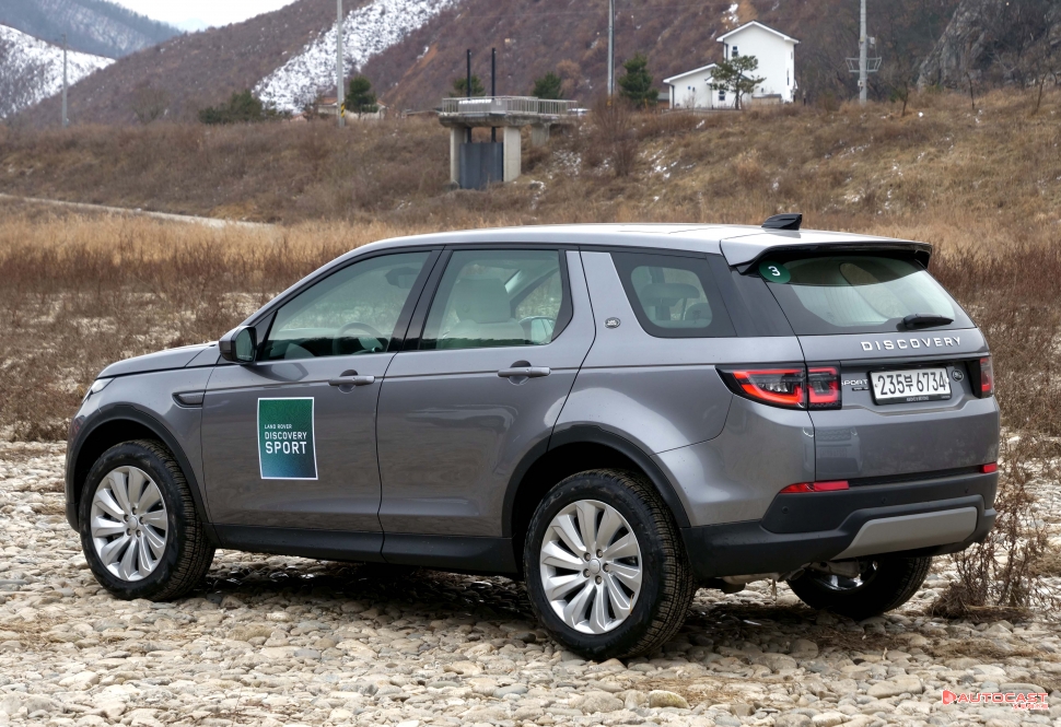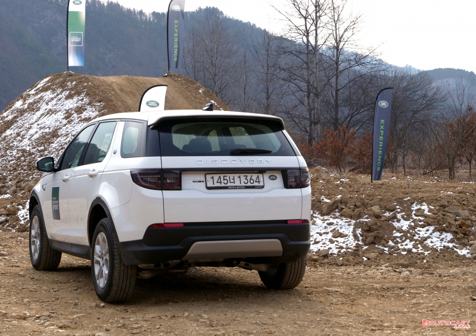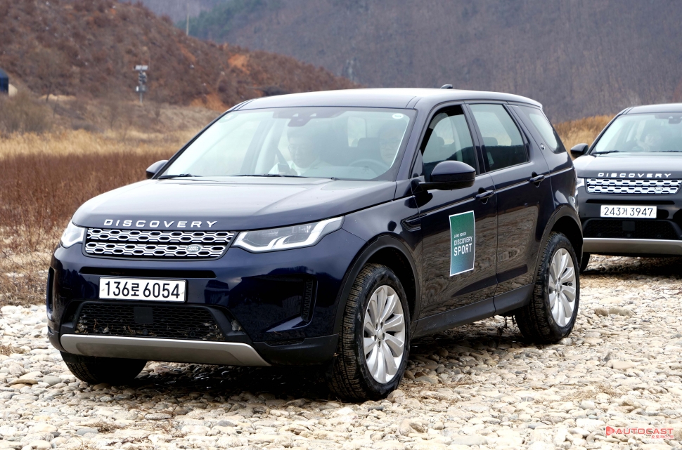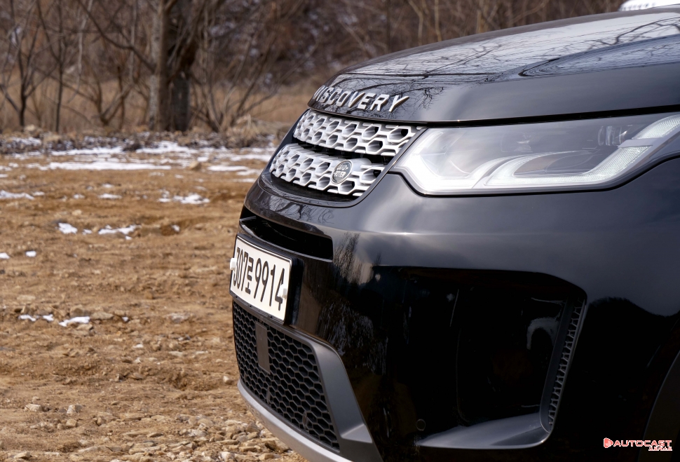 오프로드 주행이 끝난 후 차에서 내려 차량 밖을 확인했다. 흙탕물이 살짝 묻어 터프한 SUV 다운 모습이 부각된다. 이전 디스커버리 스포츠와 거의 같지만 좀 더 어른스러워진 분위기를 풍긴다. 특유의 짧은 앞, 뒤 오버행 덕에 야무져 보이는 자세는 여전한데, 이 짧은 오버행은 단순한 형태적 요소 외에 오프로드 주행 시 진입각과 탈출각 확보를 위한 기능적 디자인이다.