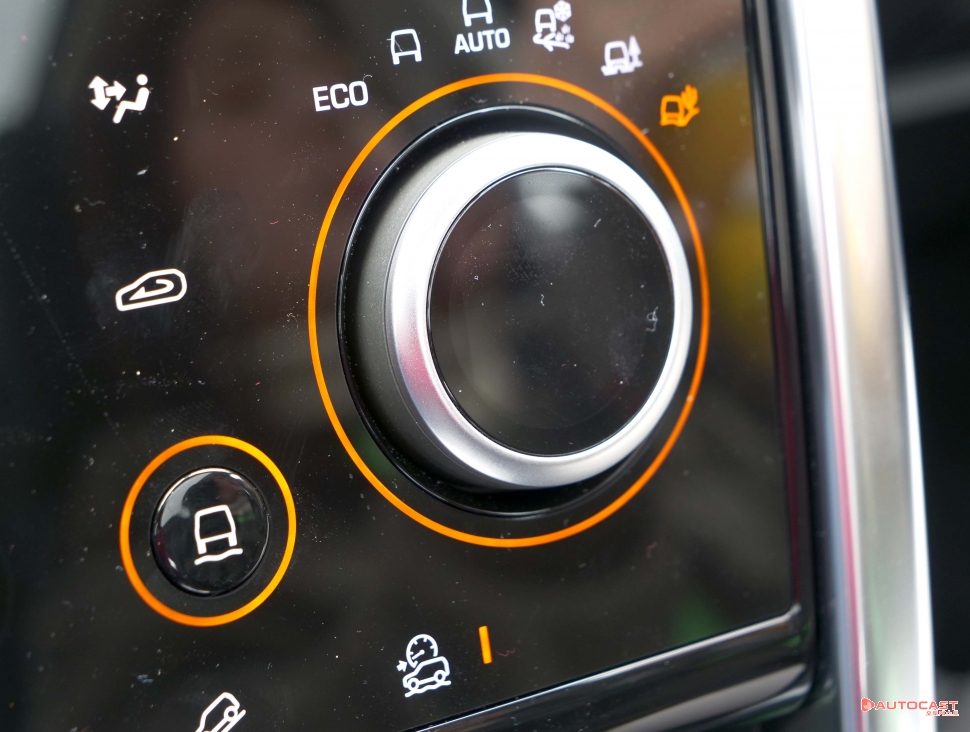 이전 디스커버리 스포츠는 버튼 타입의 터레인 리스폰스 셀렉터를 사용했지만 변경된 모델에선 공조장치 다이얼과 터레인 리스폰스 다이얼을 공유하는 독특한 방식으로 변경했다. 이 다이얼을 ‘Auto’로 설정하고 오프로드 주행을 시작했다.