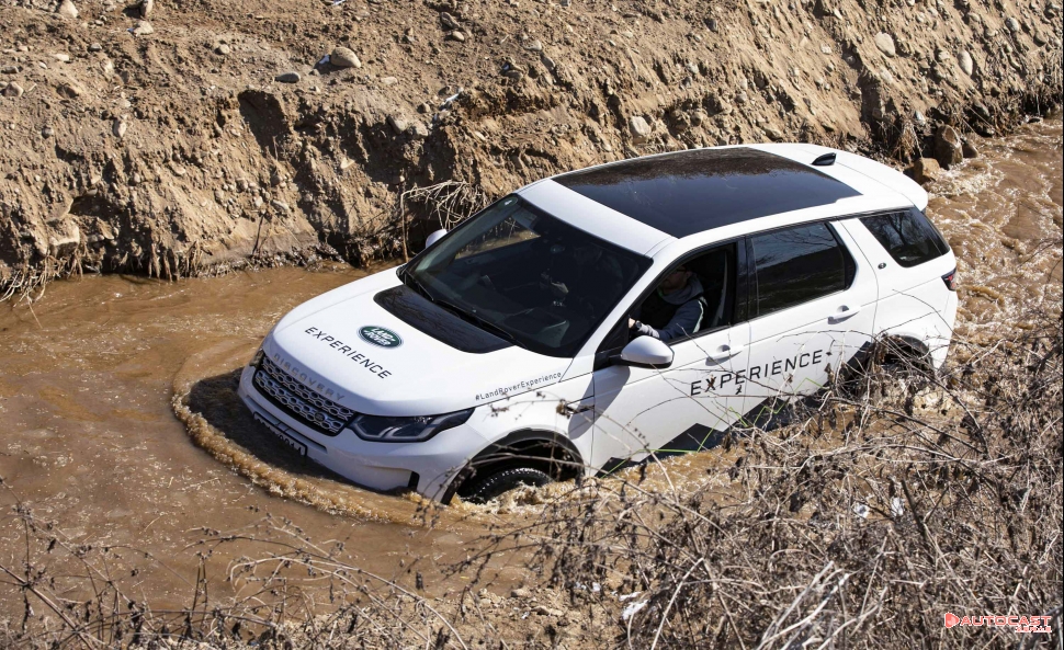 하이라이트인 수로 코스에 도달했다. 뉴 디스커버리 스포츠는 거의 휠하우스 윗부분까지 물이 차는 최대 600mm에 달하는 도강 능력을 갖췄다. 깊은 물에 들어가면 부력의 영향으로 그립을 찾는 것이 특히 더 어렵다. 또한, 배기구에 물이 들어가면 시동이 꺼져버리거나 배기 계통에 손상을 줄 수 있어 계속적으로 가속 페달을 밟아줘야 한다. 이때, 다시 한번 ATPC가 역할을 한다. 일정한 속도를 유지한 채 계속적으로 차를 밀고 앞으로 나아간다. 도강 코스의 물 표면에는 설 얼은 얼음들이 깨져 차체를 두드린다.
