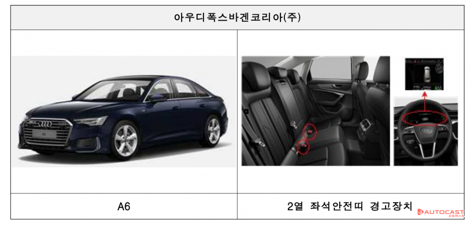 아우디 A6 40 TDI 등 11개 차종 1만764대와 한불모터스에서 수입, 판매한 DS3 Crossback 1.5 Blue HDi 78대는 2열 좌석안전띠 경고장치가 자동차 안전기준에 부적합한 것으로 나타났다.