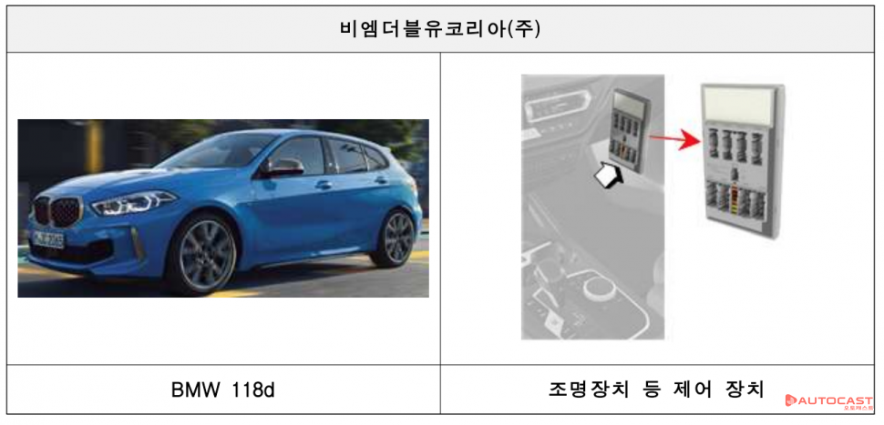 BMW 118d 321대는 차량 실내·외 조명장치 등을 제어하는 소프트웨어의 오류로 계기판에 후미등 및 차폭등 작동 여부 표시등이 점등되지 않을 가능성이 확인됐다. 해당 차량은 지난 21일부터 무상수리를 진행하고 있다.