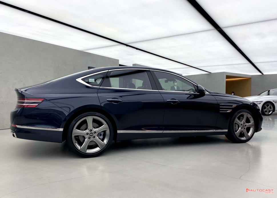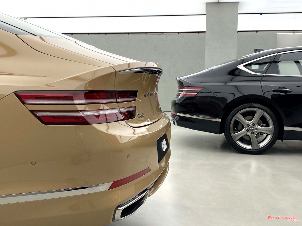 여기에 안쪽으로 오목하게 들어간 뒤 트렁크 면이 실루엣에 작지만 큰 차이를 만들어낸다. 전체적으로 큰 타원형 모양을 만드는 이 면은 제네시스 에센시아 콘셉트에서 선보인 디자인으로 GV80에도 적용했다. 하지만 G80의 낮은 루프라인과 만나면서 이 특징적인 형태가 더욱 부각됐다.