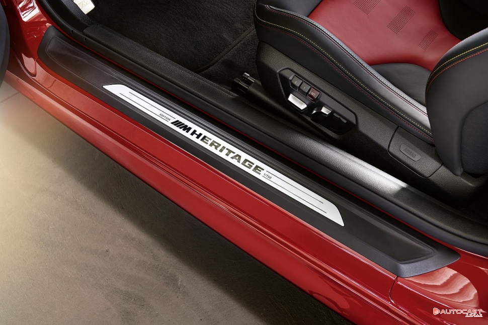 실내에는 BMW 인디비주얼 풀 메리노 가죽으로 제작된 M 스포츠 시트를 탑재했다. 시트 컬러 조합과 스티치 색상은 외장색에 따라 달라진다. 대시보드에는 M 컬러가 각인된 스페셜 카본 파이버 트림과 750대 한정 모델임을 나타내는 M 헤리티지 전용 배지가 적용됐으며, 헤드레스트와 도어실에도 M 헤리티지 전용 디자인을 더해 기존 모델과의 차별성을 강조했다.
