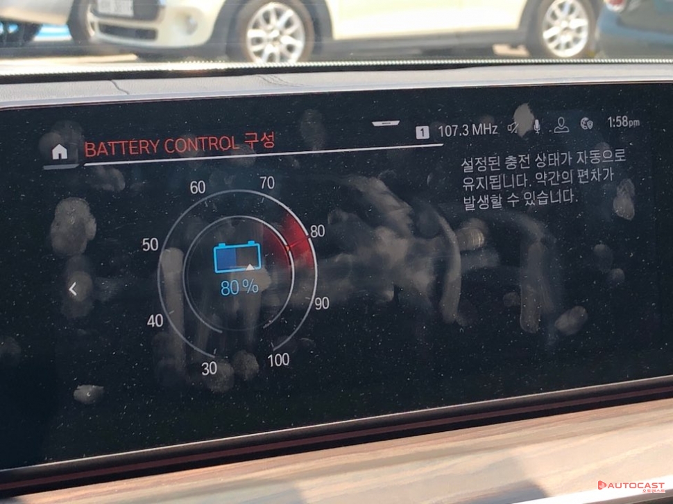 마지막으로 Battery control로 바꿔 달렸다. 해당 차량을 구매해서 탄다면 아마 이 모드를 자주 활용하지 않을까 싶다. 똑똑하게 사용하면 훨씬 효율적인 주행이 가능하기 때문. 운전자가 미리 설정한 배터리 값에 맞게 전기를 쓴다. 전기모터로만 주행해야 할 상황을 대비해 절약하고 충전할 수 있는 방법이기도 하다. 배터리 충전 상태는 30~100% 사이에서 설정할 수 있다. 배터리 값을 80%로 두고 달리기 시작하자 Max eDrive로 뚝뚝 떨어졌던 주행가능거리가 점차 늘기 시작했다.