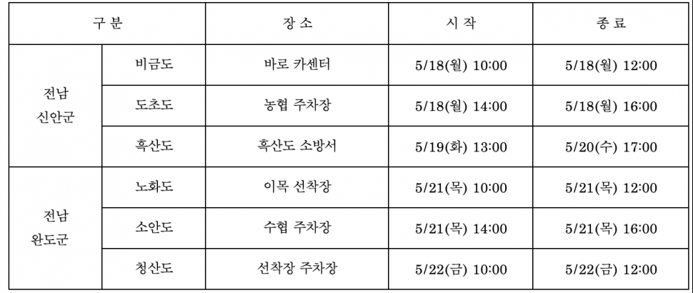 또한 여름철 운행을 앞두고 ▲타이어 마모 상태 점검 및 에어컨 필터 점검을 비롯해 도서지역 차량 관리 전반에 대한 정비상담 서비스도 실시한다.