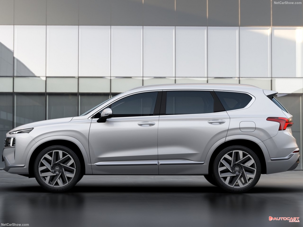 측면부는 전면에서 후면부까지 이어지는 기존 싼타페의 사이드캐릭터 라인을 유지했다. 또 신규 플랫폼을 적용해 전장을 늘리고 새 디자인의 20인치 휠을 장착했다.