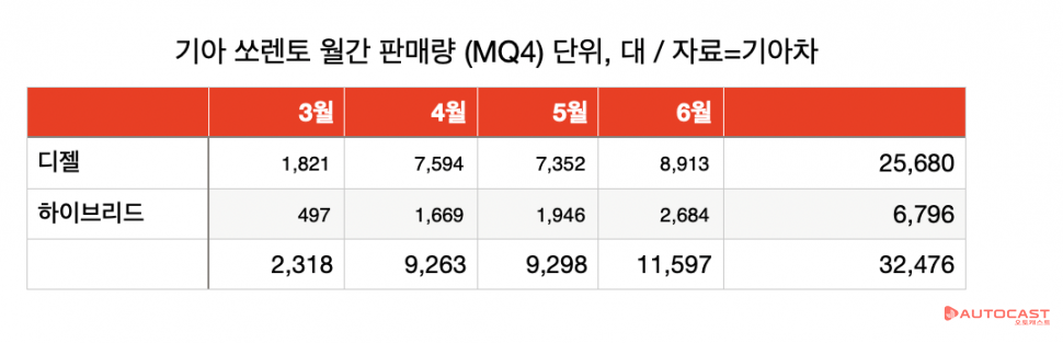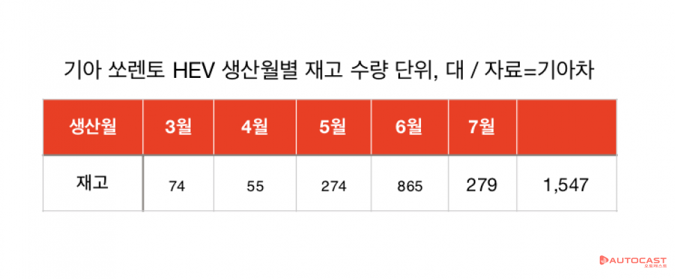 한편 쏘렌토 하이브리드의 판매를 재개하면 현재까지 남아있는 1500여대의 재고 물량을 사전 배정한다. 오토캐스트가 입수한 자료에 따르면 쏘렌토 하이브리드의 재고는 이달 7일 기준으로 1547대다. 당초 쏘렌토 하이브리드의 사전계약대수는 1만3000여대이지만 해당 계약자들에게 지난달까지 6796대가 출고되고도 재고가 쌓인 것. 재고 차량에 대해선 조건에 따라 할인을 적용해 판매한다는 입장이다.