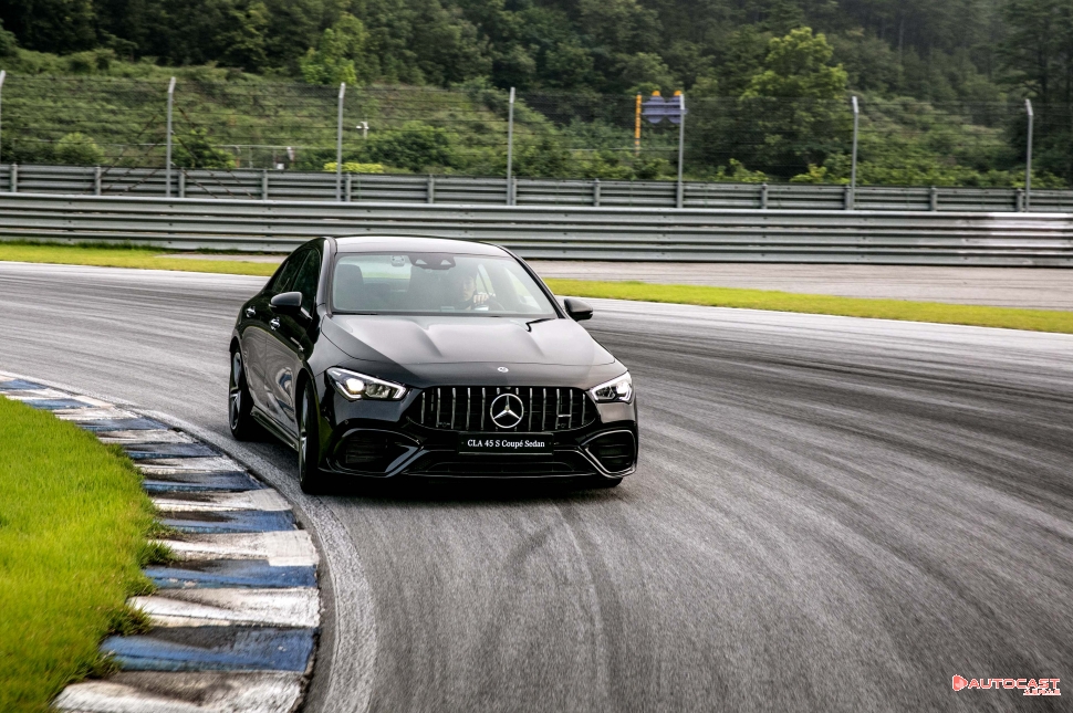 이 차는 아주 다른 감각을 전달했다. 너무나 경쾌하게 트랙의 코너들을 돌아나갔다. 위에 언급한 63 라인업들이 무자비한 힘을 바탕으로 육중한 차체를 밀고 나가는 감각이라면 CLA는 경량 핫해치에 가까웠다. 날카롭게 코너를 돈 이후에는 강력한 그립으로 다시 가속한다. 앞뒤 구동력을 100:0에서 최대 50:50까지 조절이 가능한 CLA 45 AMG의 전륜기반 4MATIC+의 역할이 크다. 오버스티어, 언더스티어 한쪽으로 치우치지 않고 균형 있는 움직임을 보인다.