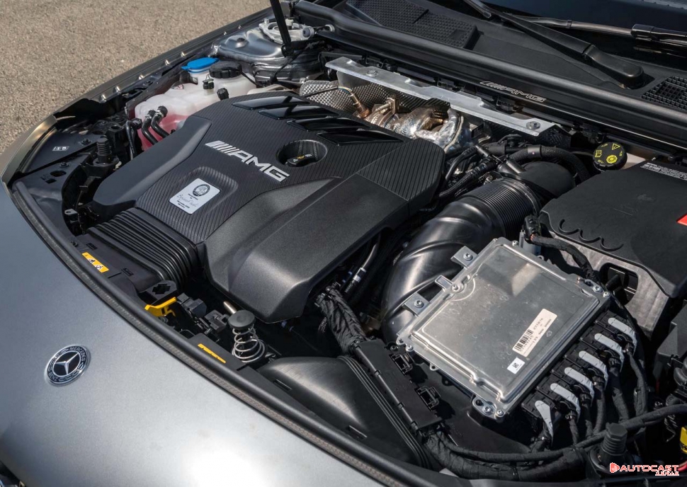 이렇게 생각해보자. BMW의 두 세대 전 3시리즈(E90) 기반 M3는 역대 M3 중에는 유일하게 V8 4.0리터의 거대한 엔진을 장착한 모델이었다. 이 M3의 최고출력은 420마력, 최대토크는 40.7kg.m였다. 물론 이 엔진은 자연흡기이고 CLA 45 S의 엔진은 터보 엔진이라는 차이가 있다. 하지만 그것을 감안한다고 해도 대량으로 양산한 4기통 2.0리터의 엔진에서 이 정도의 힘을 만들어 내는 것은 놀라운 일이다.