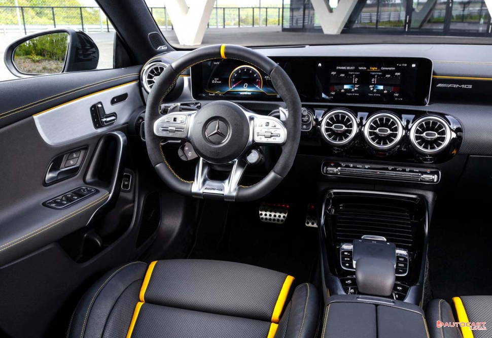 실내에서 가장 눈에 띄는 차이는 AMG 전용 D컷 스티어링 휠이다. 여기에는 드라이빙 모드를 선택하는 다이얼이 위치한다. 동그란 다이얼 가운데에는 디지털 액정이 C(컴포트), S(스포츠), 깃발모양(레이스) 등 총 6가지 드라이빙 모드를 표시한다. 레이스 모드는 차량의 성능을 전부 사용하고 반응성을 극한까지 끌어올려 트랙 주행에 적합한 상태로 만든다. 해당 모드에는 세부적으로 '드리프드 모드(Drift mode)'와 ‘마스터(Master) 모드’를 더해 트랙 주행에서 재미를 극대화한다.