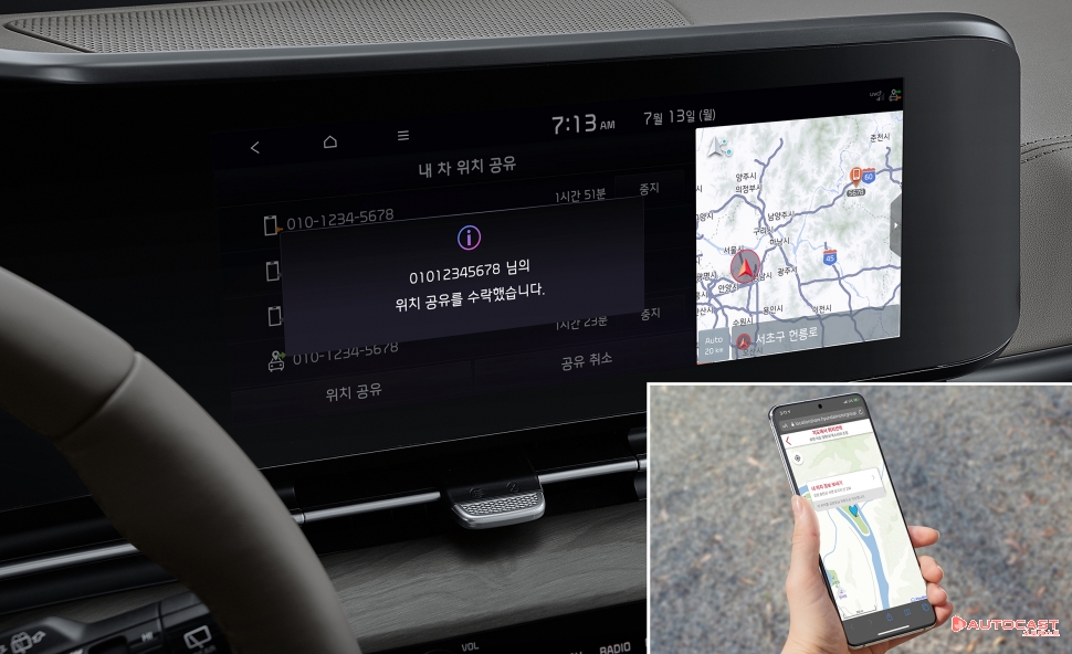 '내 차 위치 공유' 기능도 적용한다. 이 기능은 목적지로 이동 시 현재 차량 위치를 가족, 지인, 차량 등 공유 대상에게 전송하는 기능으로 목적지까지 남은 시간, 거리, 운행 속도 등의 정보를 공유한다.