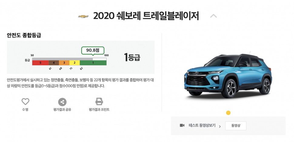 지엠테크니컬센터코리아 차량안전본부 김동석 전무는 “쉐보레 트레일블레이저의 KNCAP 최고등급 획득은 차량 개발 초기단계부터 고객의 안전을 최우선시하는 GM의 제품개발 철학을 명확히 보여준 결과”라며 “앞으로도 세계 최고 수준의 차량 개발을 위해 임직원 모두가 함께 끊임 없이 노력해갈 것”이라고 말했다.