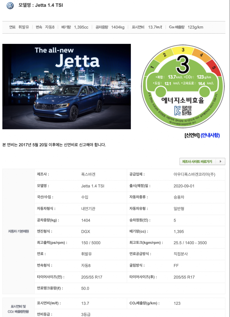 폭스바겐코리아는 지난 5월 환경부를 통해 해당 신차의 소음 및 배출가스 인증을 마쳤다. 국내 판매 모델은 1.4리터 가솔린 터보 엔진과 8단 자동변속기를 탑재하고 최고출력 150마력(5000rpm), 최대토크 25.5kg.m(1400-3500rpm)를 발휘한다. 특히 배출가스 123g/km로 저공해차 3종 인증을 받아 혼잡통행료와 공영·공항주차장 이용료 등을 감면받을 수 있다. 복합연비는 13.7km/ℓ다.