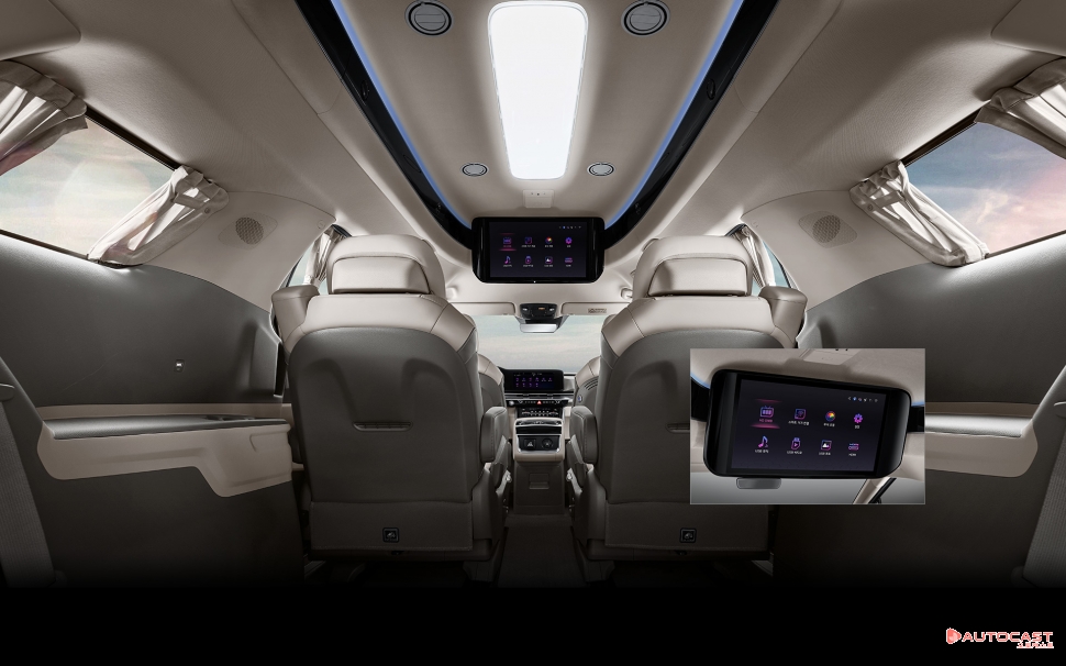 그리고 조수석 시트 등받이에 부착한 공기청정기는 실내 공기 상태를 감안해 초미세먼지 및 실내 유해가스를 정화하며 1열과 2열에서는 냉온 컵홀더로 음료의 온도를 유지한다. 그리고 측면과 후면에 주름식 커튼을 적용해 개인의 사생활을 보호한다.
