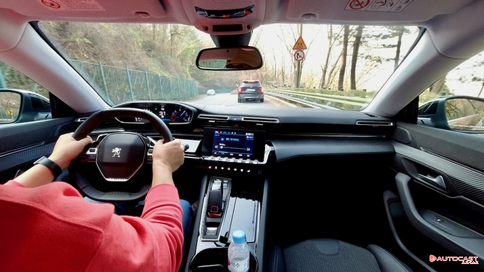 17인치 타이어는 차를 좀 더 말랑말랑하게 바꿨다. 프랑스에서 시승했던 차는 19인치 타이어를 끼웠던 것으로 기억한다. 단단하고 고속에서도 날카로운 주행이 가능했다. 반면 이 차는 17인치 타이어를 끼우면서 승차감 면에서 더 장점이 생겼다. 무난한 주행에 무난한 세팅이다. 이따금 스포츠 모드로 가속을 하고 푸조의 날카로운 핸들링을 즐기려면 큰 무리는 없지만 데일리카로 사용하기에는 오히려 17인치 타이어가 적합할지도 모른다.