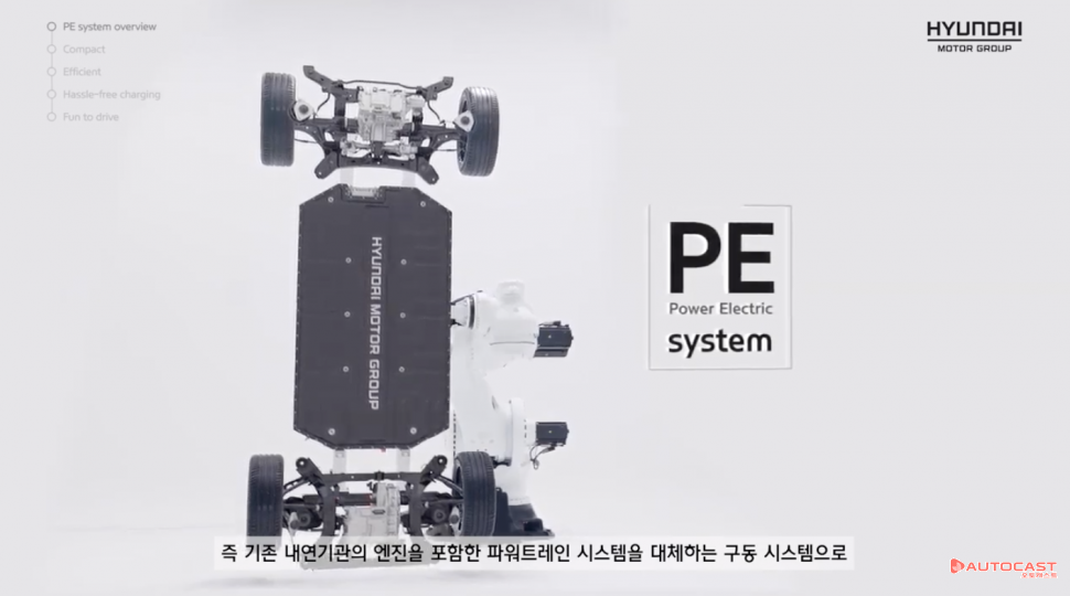 현대차그룹은 향후 E-GMP를 기반으로 개발되는 차세대 전용 전기차에 신규 PE 시스템(Power Electric System, 기존 내연기관의 엔진을 포함한 파워트레인을 대체하는 구동 시스템), 다양한 글로벌 충전 인프라를 고려한 세계 최초의 400V/800V 멀티 급속충전 기술, 차량 외부로도 자유롭게 전기를 공급할 수 있는 V2L(Vehicle to Load) 기능 등을 추가로 적용해 보다 진화된 전동화 모빌리티 고객경험을 제공한다는 계획이다.