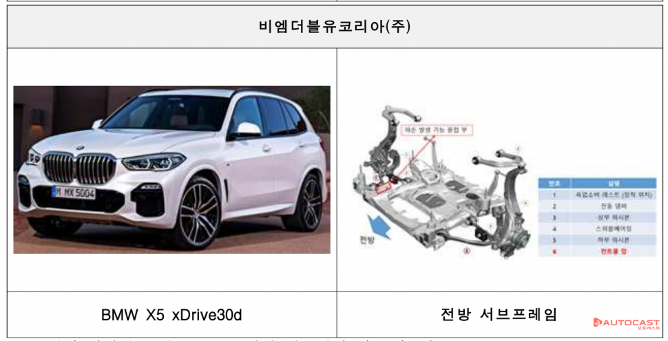 BMW X5 xDrive30d 등 11개 차종 69대는 서브 프레임 제작공정 중 일부분의 용접이 제대로 되지 않아 용접부가 균열되고, 이로 인해 차체와 바퀴를 연결하는 부품이 분리돼 안전운행에 지장을 줄 가능성이 확인돼 리콜에 들어간다. 해당 차량은 12월 4일부터 BMW코리아 공식 서비스센터에서 무상으로 수리를 진행하고 있다.