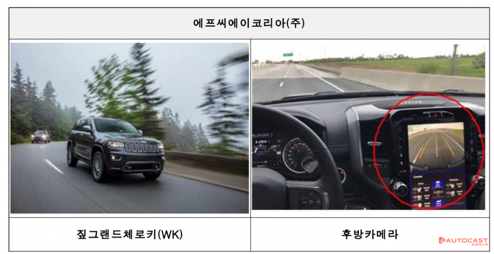 FCA코리아의 지프 그랜드체로키(WK) 1072대는 후방 카메라가 안전기준에 부적합한 것으로 파악됐다.  후진상태의 기어에서 다른 기어로 변경 시 후방카메라가 10초 이내에 꺼져야 하지만 그렇지 않은 것으로 확인됐다. 해당 차량 역시 리콜을 진행하되 추후 시정률 등을 감안해 과징금을 부과할 계획이다. 무상 수리는 12월 14일부터 FCA코리아 공식 서비스센터에서 받을 수 있다.