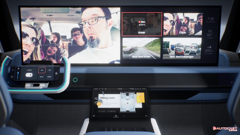 크리에이터 스튜디오는 차량 내부에서 촬영과 편집을 할 수 있도록 최적화했다. 퍼스널 오디오 헤드레스트로 몰입형 사운드 를 제공하며 오디오 레벨도 자동으로 조절한다. 또 카메라가 머리 움직임과 활동에 따라 앵글을 잡고 조명을 자체적으로 설정하도록 했다. 휠 컨트롤을 통해 콘텐츠 편집과 자동 배경 소음 감소 기능도 제공한다.