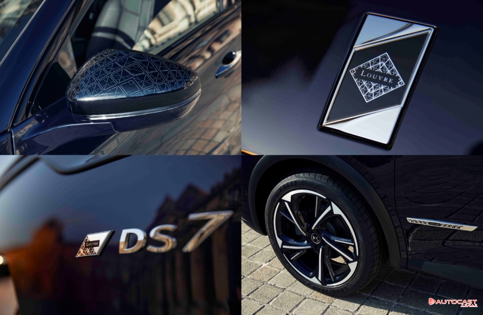 DS 7 크로스백 루브르 에디션은 루브르 박물관의 상징적인 디자인 요소를 적용했다. 전면의 DS 윙스, 윈도우 스트랩, 루프 바, 그리고 리어램프 몰딩에 유광 블랙을 적용했다. 레이저 음각 기술로 피라미드를 형상화한 다이아몬드 패턴을 사이드미러 커버에 추가하고 보닛, 운전석 및 조수석 도어, 테일게이트에 루브르 에디션을 상징하는 배지를 적용했다. 여기에 20인치 알렉산드리아 알로이 휠을 탑재했다.