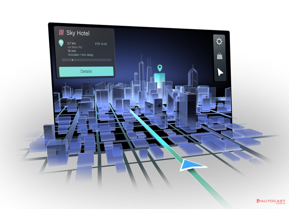 3개사가 공동개발한 3D 자동차 내비게이션은 히어의 프리미어 3D 시티즈(HERE Premier 3D Cities)에서 제공한다. 3D 시티즈는 전세계 75개 도심부를 3D로 구현한 것이다. 각 건물마다 위치, 용적, 고도 및 외관 색상을 기반으로 색인화돼 정확도가 높다.