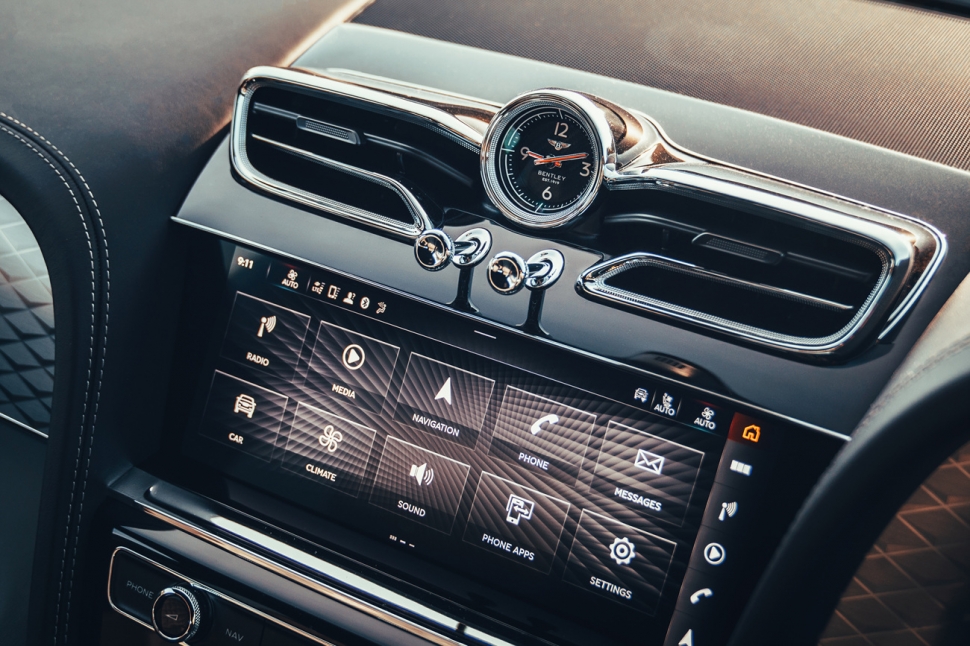 날개 모양으로 디자인한 대시보드에 10.9인치 디스플레이를 적용했다. 디스플레이 그래픽은 운전자의 취향에 따라 개별 설정이 가능하며 무선 애플 카플레이 및 안드로이드 오토도 사용 가능하다. 뒷좌석의 승객은 플라잉스퍼에 도입된 것과 비슷한 더욱 커진 터치스크린 리모트 컨트롤 태블릿을 활용할 수 있다.