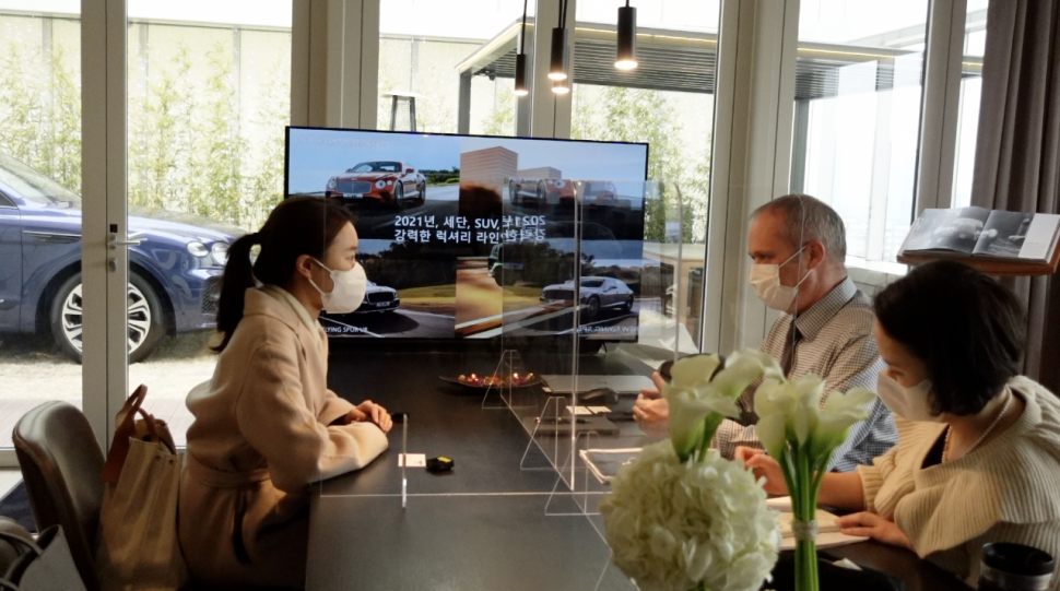 벤틀리 엠블럼이 붙은 문을 열고 들어가니 벤틀리모터스코리아 총괄 워렌 클락(Warren Clarke)과 통역사가 자리하고 있었다. 코로나로 인해 투명 가림막을 사이에 두고 마주 앉았다. 워렌 클락 총괄은 모니터를 보며 미리 준비한 지난해 벤틀리의 실적과 올해 브랜드 전략을 설명했다.