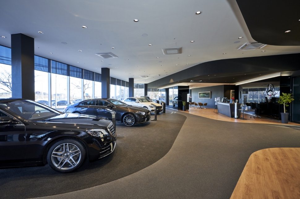 연면적 805m2(약244평), 지상 1층, 지하 1층 규모로 메르세데스-벤츠의 최신 인테리어 콘셉트를 적용했다. 총 4대의 차량 전시가 가능하며 2개의 디지털 미디어 스크린을 통해 다양한 라인업과 차량 옵션을 간접 체험 해볼 수 있다. 강릉 서비스센터는 최대 3대까지 동시에 수리 가능하다.