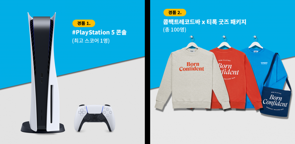 이벤트 기간 중 매일 정오에 ‘오늘의 1등’(총15명)을 발표하며, 이벤트 종료 후인 29일에 총85명의 ‘컨피던트 드라이버’와 1명의 ‘베스트 드라이버’를 발표한다. ‘오늘의 1등’ 및 ‘컨피던트 드라이버’로 선정 및 추첨된 참가자에게는 가로수길의 레코드 펍, ‘콤팩트 레코드 바’와 콜라보레이션으로 제작한 티록 굿즈 세트(약15만원 상당의 맨투맨 및 캔버스백)를 증정한다. ‘베스트 드라이버’로 선정된 1명에게는 플레이스테이션5 콘솔을 증정한다.