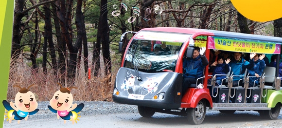 대표적인 차량이 대구 달성군의 ‘비슬산 반딧불이 전기차’다. 국내 최초 산악용 전기차로, 매일 해발 1000m 고지를 오르내리며 관광객들이 비슬산 암괴류, 참꽃군락지, 대견사 등의 명소를 전기차를 타고 편안하게 둘러볼 수 있도록 돕는다. 길이 6m, 폭 2.m 높이 2.2m이며 최고속도는 시속 15km로 성인 20명이 앉을 수 있게 제작했다. 편도 5.8km에 약 35분 정도가 소요되며, 요금은 왕복 만원이다.