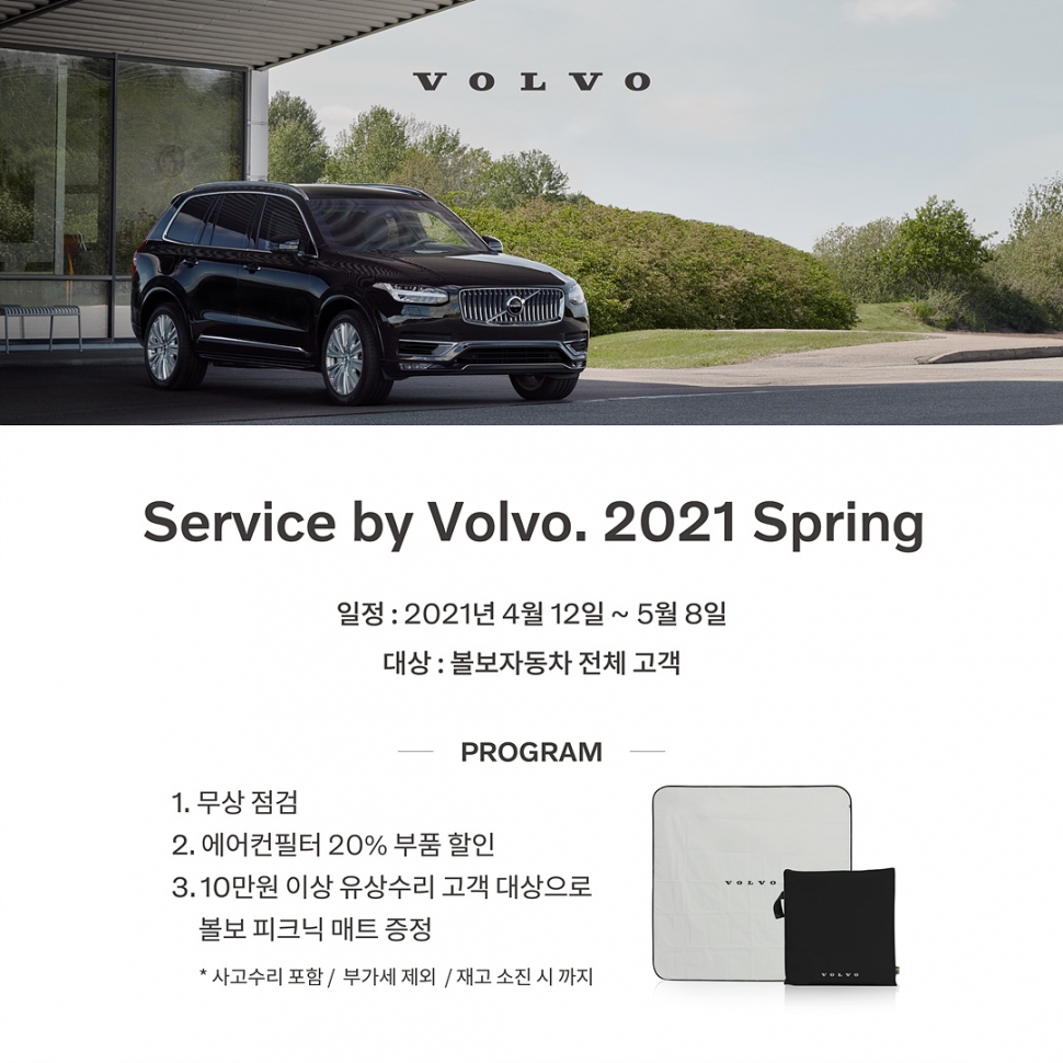또 사고 수리를 포함해 10만원 이상 유상 수리를 진행한 고객에게는 특별 제작한 볼보 피크닉 매트를 지점별 선착순으로 증정한다.