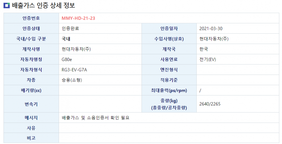 지난달 30일에는 환경부 배출 및 소음 인증을 획득했다. 공개된 인증 자료에 따르면 신차의 공차중량은 2265kg으로 기존 3.5 터보 AWD의 1960kg보다 305kg 더 무겁다. 또 테슬라 모델S 퍼포먼스 트림(2240kg) 보다 25kg 무거운 수치다.