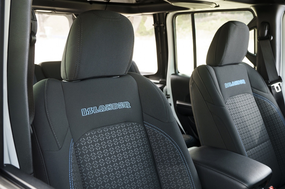 내부에는 서프 블루(Surf Blue) 컬러의 스티칭으로 포인트를 줬다. 또 ‘아일랜더’ 로고를 새긴 직물 시트를 장착했다.