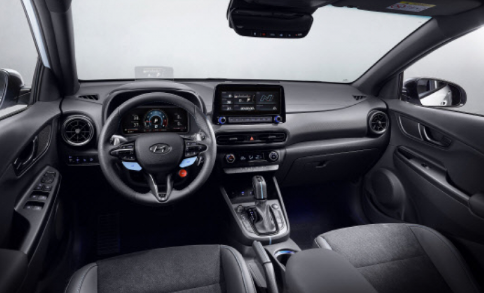 코나N은 기능적인 사양을 최우선으로 생각했기에 디자인에서도 냉각, 경량화, 동력 이 세가지를 가장 중요시했다. 또 곳곳에 빨간색 포인트를 적용했다. 특히 범퍼 하단 프런트 스플리터부터 리어범퍼까지 빨간색 포인트로 마무리해 역동적인 퍼포먼스를 잘 느끼게 했다. 실내에는 블루 스티치 라인으로 포인트를 줬고 N전용 스티어링 휠과 스위드 재질로 몸을 잡아주는 시트 등을 장착해 운전자가 운전에 몰입할 수 있는 환경을 조성했다.