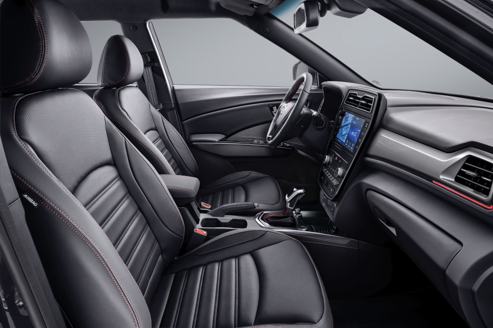 실내에는 시트&스티어링휠, 센터암레스트, 기어노브, 클러스터페시아, 카매트 등에 레드스티치를 적용하고 센터페시아와 전면 에어벤트 홀에 레드 포인트를 추가했다.