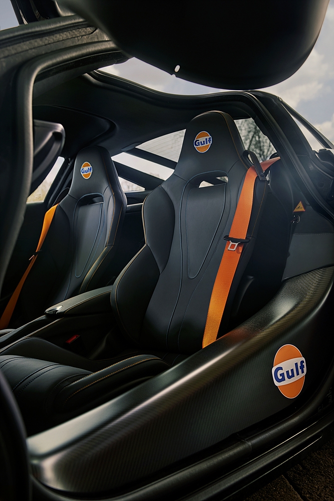 또 브레이크 캘리퍼에 적용한 걸프 솔리드 오렌지, 헤드레스트와 도어 실(Sill)의 걸프 로고, 파랑과 주황색 스티치 등 걸프 리버리의 상징으로 콕핏 공간을 완성했다. 이 외에도 스티어링 휠의 걸프 솔리드 오렌지 컬러 마킹, 타이어 림을 감싸는 걸프 솔리드 오렌지 라운드 디자인과 보닛을 가로지르는 걸프 스트라이프 등으로 디자인을 마감했다.