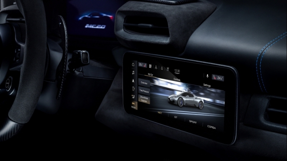 MC20의 시트 및 도어 패널에는 레이저 커팅 기술이 사용된 블랙 컬러의 알칸타라 소재를 적용했다. 여기에 블랙 컬러와 대조되는 블루 및 메탈릭 그레이 두 가지 포인트 컬러의 스티칭을 더했다. 메탈릭 그레이 컬러의 알칸타라 소재 시트는 추가 옵션으로 선택할 수 있다.