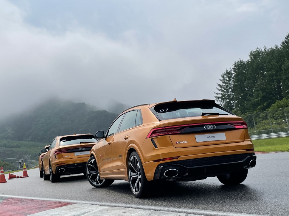 이날 아우디 드라이빙 익스피리언스 행사는 트랙 드라이빙, USP 드라이빙, 시닉 드라이빙 등 세 가지 코스로 진행됐다. USP 드라이빙에서는 람보르기니 우루스의 형제차 RS Q8의 후륜조향 성능과 가속 성능을 체험했다. 뒷바퀴가 최대 5도까지 움직이는 Q8을 타고 이리저리 움직여보면 길이가 5m가 훌쩍 넘는 SUV를 타고 있단 생각이 들지 않을 정도다. 일반 공도를 달려보는 시닉 드라이빙에서는 RS7과 아우디 e트론을 번갈아가며 잠깐씩 시승하며 아우디만의 민첩한 핸들링과 승차감을 체험했다.