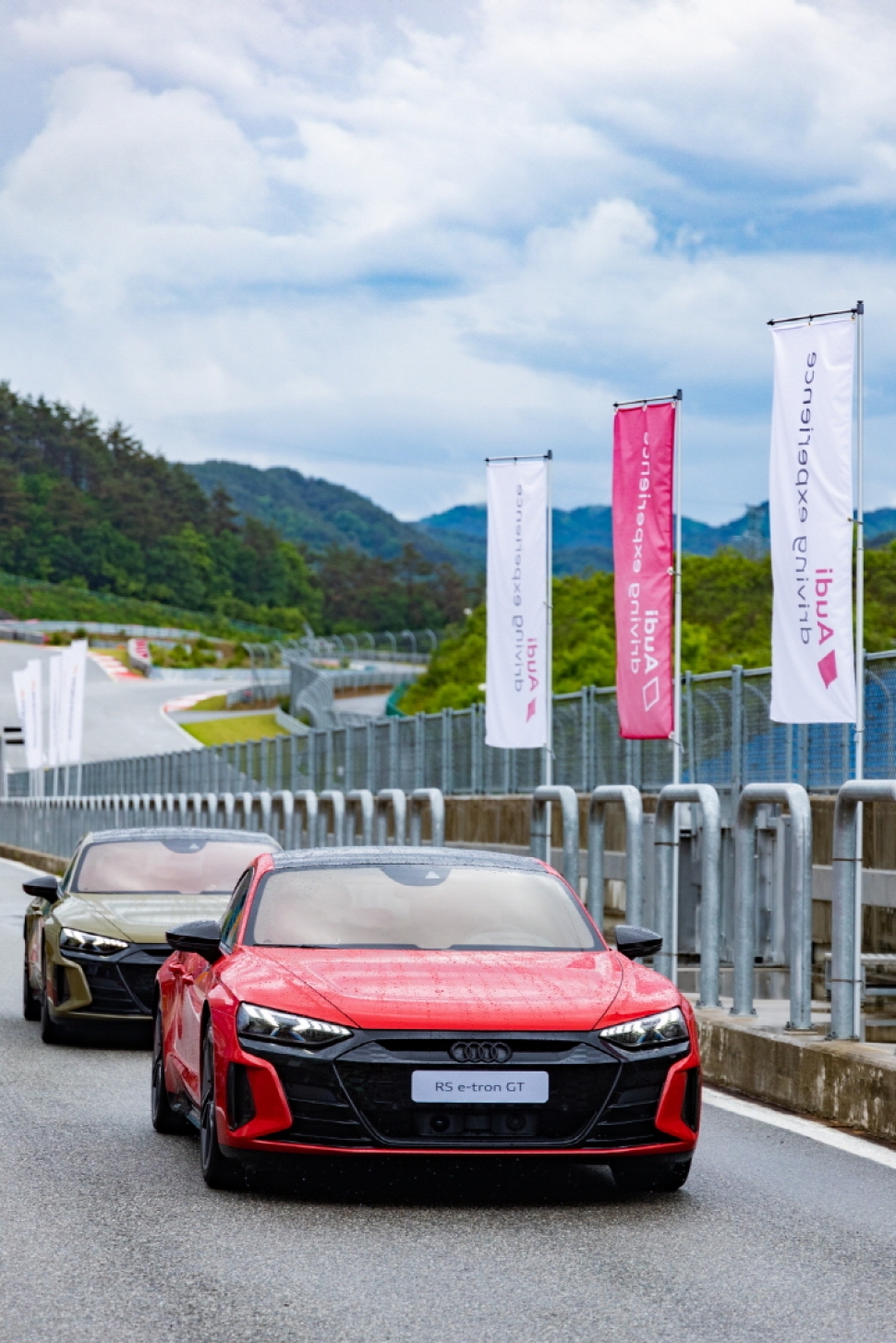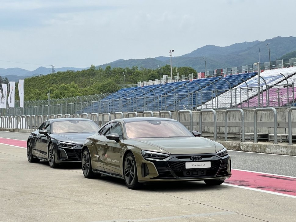 아우디도 이 대열에 합류했다. 지난달 서울 한남동에서 전기 버전의 그랜드투어러 e-트론 GT와 전기 고성능 스포츠카 RS e-트론 GT를 국내에 처음으로 공개했다. 얼마 지나지 않아 지난 1일 이 차들이 강원도 인제 서킷에 등장했다. 아우디가 전세계 곳곳에서 진행하는 ‘아우디 드라이빙 익스피리언스’가 국내에도 열렸기 때문. 아직 정식 출시 전이지만 전문 드라이버가 트랙에서 모는 e-트론 GT 및 RS e-트론 GT에 동승할 수 있는 스페셜 이벤트를 아우디 측에서 마련했다.