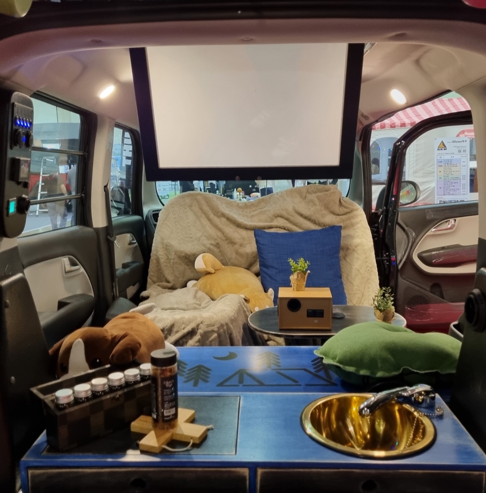 기존 캠핑카는 차체가 커서 운전하기가 힘들다. 레이는 경차 특유의 장점은 살리고 다양한 맞춤형 구성을 탑재해 캠핑카로 재 탄생했다. 이날 행사에는 2인 차박에 특화된 레이 기반의 캠핑카가 대거 등장했다.