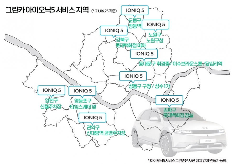이번 아이오닉 5 증차는 ESG경영의 일환으로 기획했다. 그린카는 지난 3월에 환경부 주최, ‘한국형 무공해차 전환(K-EV100)’ 선포식 참여를 통해 2030년까지 친환경차량으로 전환을 약속한 바 있다.