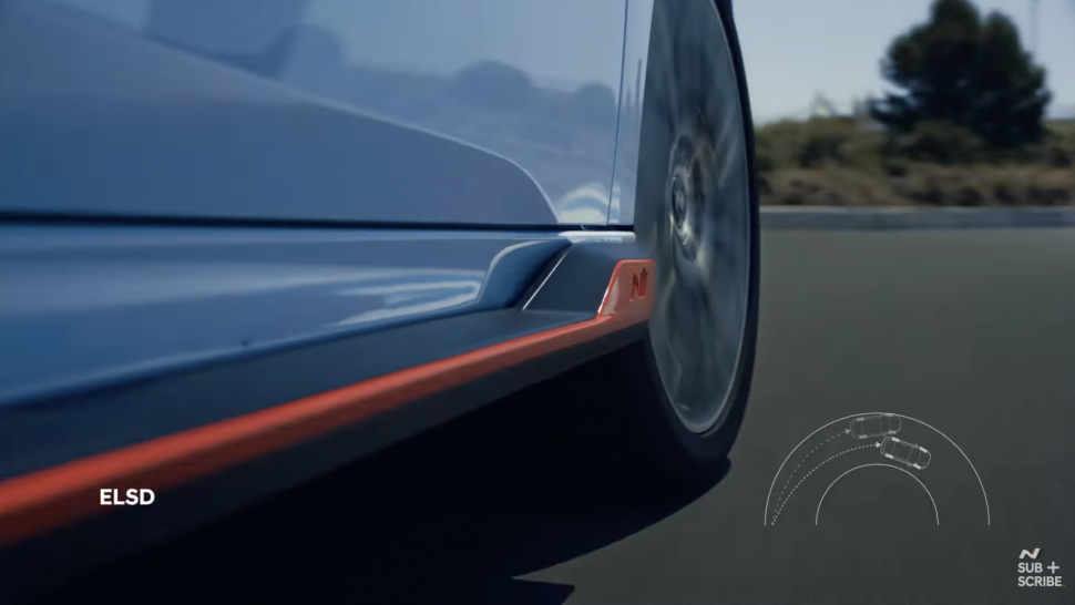 26. ELSD: Electronic Limited Slip Differential, ELSD 기술이 적용된 N 코너 카빙 디퍼렌셜은 좌우 바퀴의 구동력 최적 제어를 통해 언더스티어를 최소화해 다이나믹한 선회주행 성능을 향상시키며 구동력 손실을 보완한다.