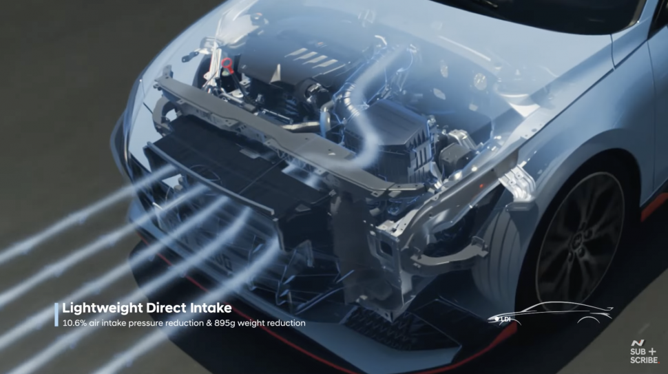 41. LDI: Lightweight Direct Intake, 흡기 개선을 위해 재설계된 에어 인테이크 시스템은 흡압을 10.6% 개선했으며 895g의 무게를 절감했다.