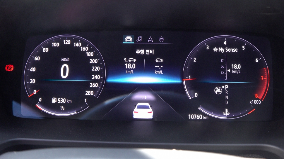 실내에는 10.25인치 디지털 계기판을 적용해 보다 세련된 인상을 완성했다. 계기판상 그래픽이나 폰트는 크기가 다소 작지만 선명하고 시인성이 좋다. 뒤로 살짝 기울어진 계기판은 주행하면서 운전하면서 시야에 벗어나는 일이 없다. 특히 중앙 디스플레이 쪽 변화가 반갑다. 이전에 소비자들에게 지적 받았던 사항을 반영해 개선했다. 이전에 디스플레이 내에서 화면을 여러번 터치해야만 사용 가능했던 공조 시스템은 다이얼과 버튼으로 빼내어 이전보다 직관적으로 기능을 사용할 수 있다. 내비게이션은 T맵이 기본으로 내장돼 있어 사용하기 편리하다.