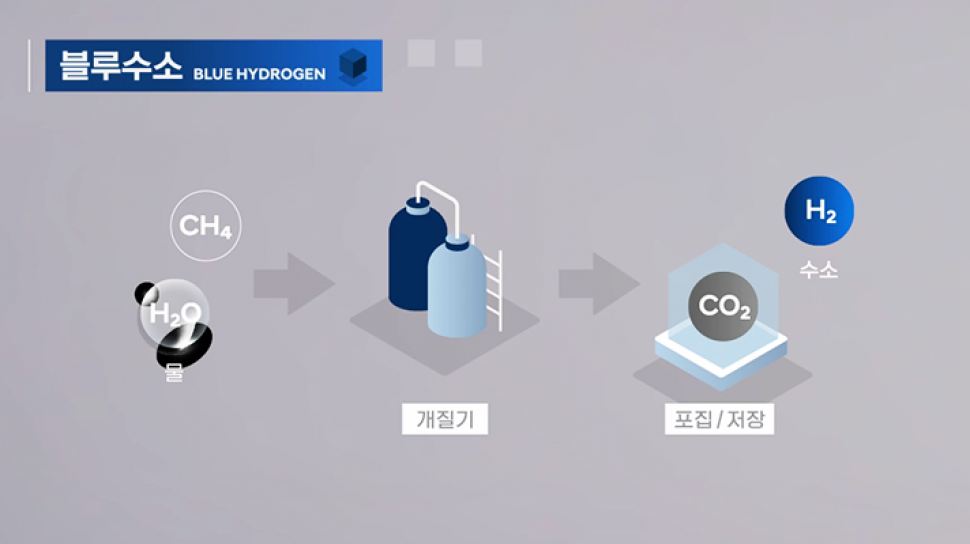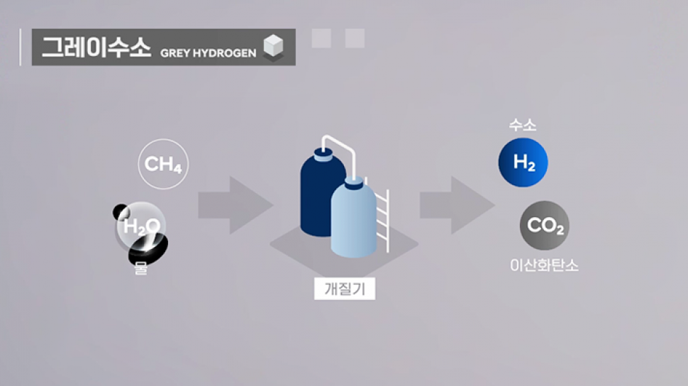 그레이 수소는 수소 생산 과정에서 이산화탄소가 발생하는 수소를 말한다. 이런 방식으로 생산되는 수소는 부생수소, 천연가스 개질 등이 있다. 부생수소는 석유화학 공정이나 철강 등을 만들 때 발생하는 부산물로 나오며, 천연가스 개질은 천연가스를 고온·고압의 수증기로 분해해 수소를 만든다. 특히 천연가스는 수소 1kg을 생산하는 데 10kg의 이산화탄소가 배출된다. 그리고 그레이 수소를 만드는 과정에서 나온 이산화탄소를 포집·저장해 베출을 줄이는 수소가 블루 수소다.