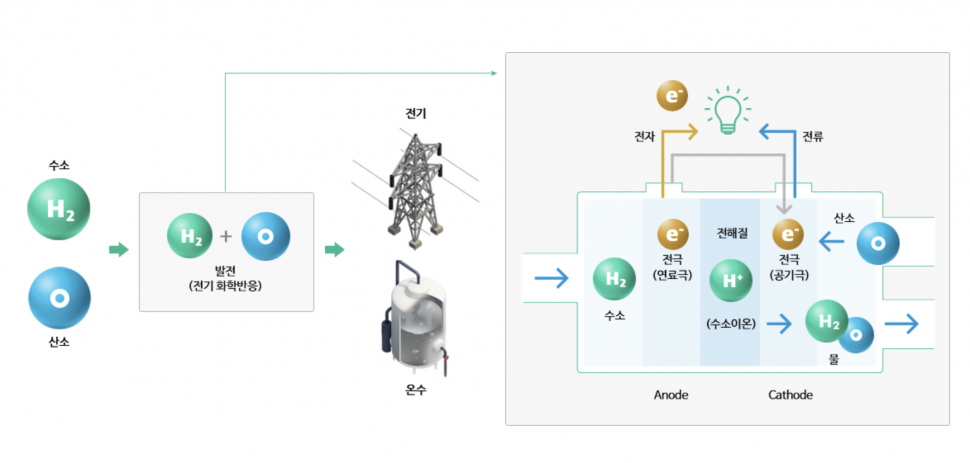 작은 용량의 전기는 배터리에 저장해 옮기기도 하지만 실상은 효율이 꽤 떨어진다. 저장할 수 있는 전력량에 한계가 있는 데다가, 사용 횟수가 많아지고 시간이 지나면 충전 최대 용량이 줄어들면서 결국 방전된다. 하지만 수소는 저장과 수송이 용이하다. 전기를 배터리에 저장해 옮기는 것보다 만들어진 전기를 수소로 만들어서 옮기는 게 훨씬 쉽다. 수소만 보충해주면 필요할 때 필요한 만큼 만들어 쓸 수 있어 효율성도 높은 편이다.