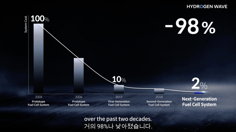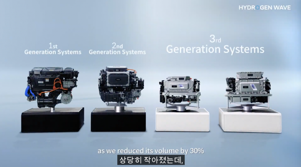 이 밖에 현대차는 수소 에너지 대중화를 위해 연료전지시스템의 크기와 가격을 낮추고 출력과 내구성을 높여 선보일 계획이다. 이날 행사에서 현대차는 100kW급, 200kW급 3세대 수소연료전지시스템 시제품을 공개했다. 해당 시스템의 가격은 현재보다 50% 이상 낮출 계획이며, 2030년경에는 가격을 더욱 낮춰 일반 전기차 수준의 가격 경쟁력을 가질 것으로 전망하고 있다.