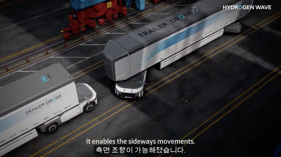 특히 이날 행사에서 현대차는 미래 장거리 물류를 위한 무인 운송 시스템 콘셉트 모빌리티인 ‘트레일러 드론’을 최초로 공개했다. 수소연료전지 및 완전자율주행기술이 적용된 2대의 ‘e-Bogie(이-보기)’ 위에 트레일러가 얹힌 형태다.